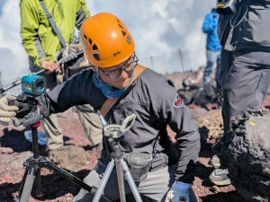 富士山頂で調査する金丸准教授(愛知大学古川教授提供)